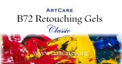 B72 Retouching Gels vary in concentration of Paraloid B72 and their hardness/softness. By selecting the right gel or gels mixture the conservator-restorer can adjust the rheology and handling properties of the retouching medium to mimic properties of the original medium used by the artist.